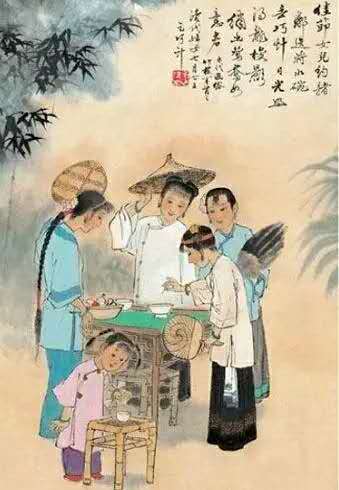 兒童會在七夕之日采摘野花掛在牛角上,又叫“ 賀牛生日”。因為傳說西王母用天河把牛郎織女分開后,老牛為了讓牛郎能夠跨越天河見到織女,讓牛郎把它的皮刨下來,駕著它的牛皮去見織女。人們?yōu)榱思o(jì)念老牛的犧牲精神,便有了“為牛慶生”的習(xí)俗。