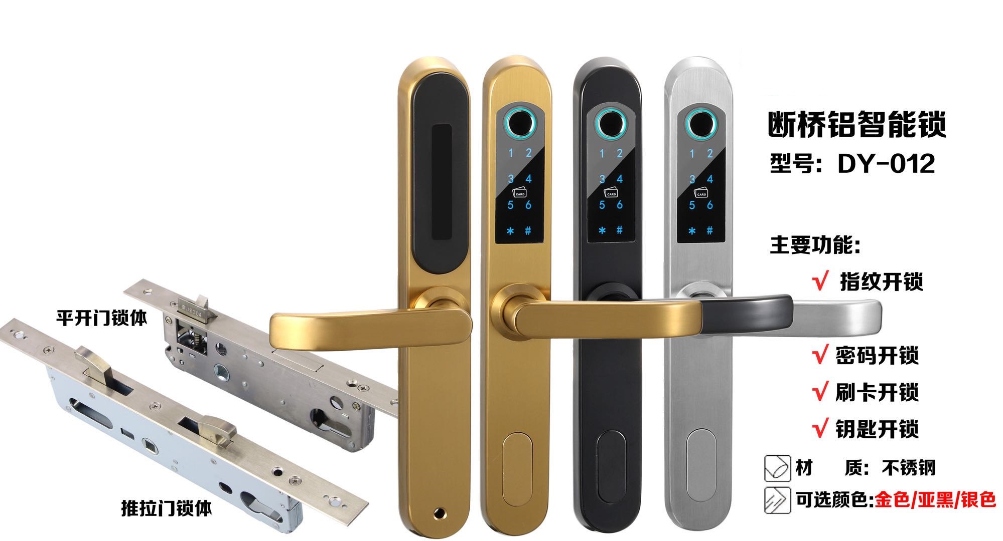 功能:指紋開鎖,密碼開鎖,卡片開鎖,機械鑰匙